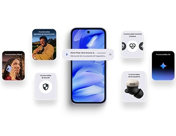 (**) Un forfait de données 5G est nécessaire (vendu séparément). Le service et l'itinérance 5G n’est pas offert par tous les fournisseurs de services ni dans toutes les régions. Pour obtenir plus de détails, communiquez avec votre fournisseur de services. Le service 5G, la vitesse et la performance dépendent de nombreux facteurs, y compris, mais sans s’y limiter, des capacités du réseau du fournisseur, de la configuration et des capacités de l’appareil, du trafic réseau, du lieu, ainsi que de la force et des perturbations du signal. Les résultats réels peuvent varier. Certaines fonctions sont offertes dans certaines régions uniquement. Des frais de données peuvent s’appliquer. Consultez la page g.co/pixel/networkinfo pour en savoir plus.